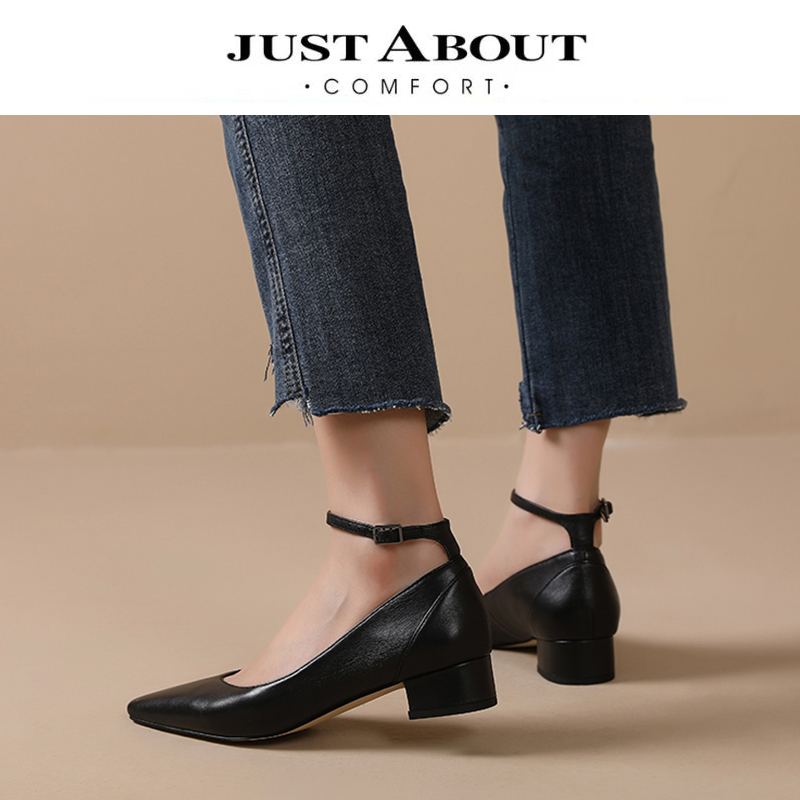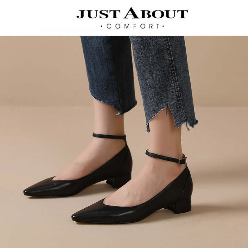 YX001 黑色单跟平底鞋,通勤穿搭首选