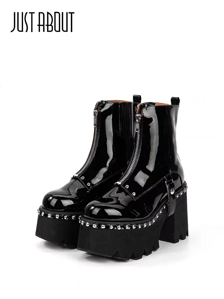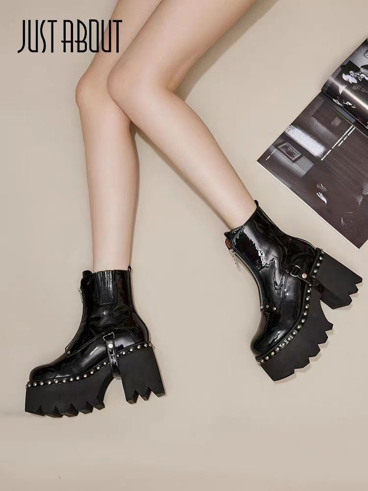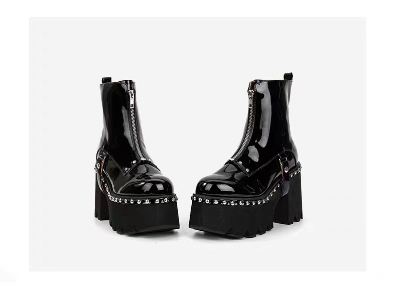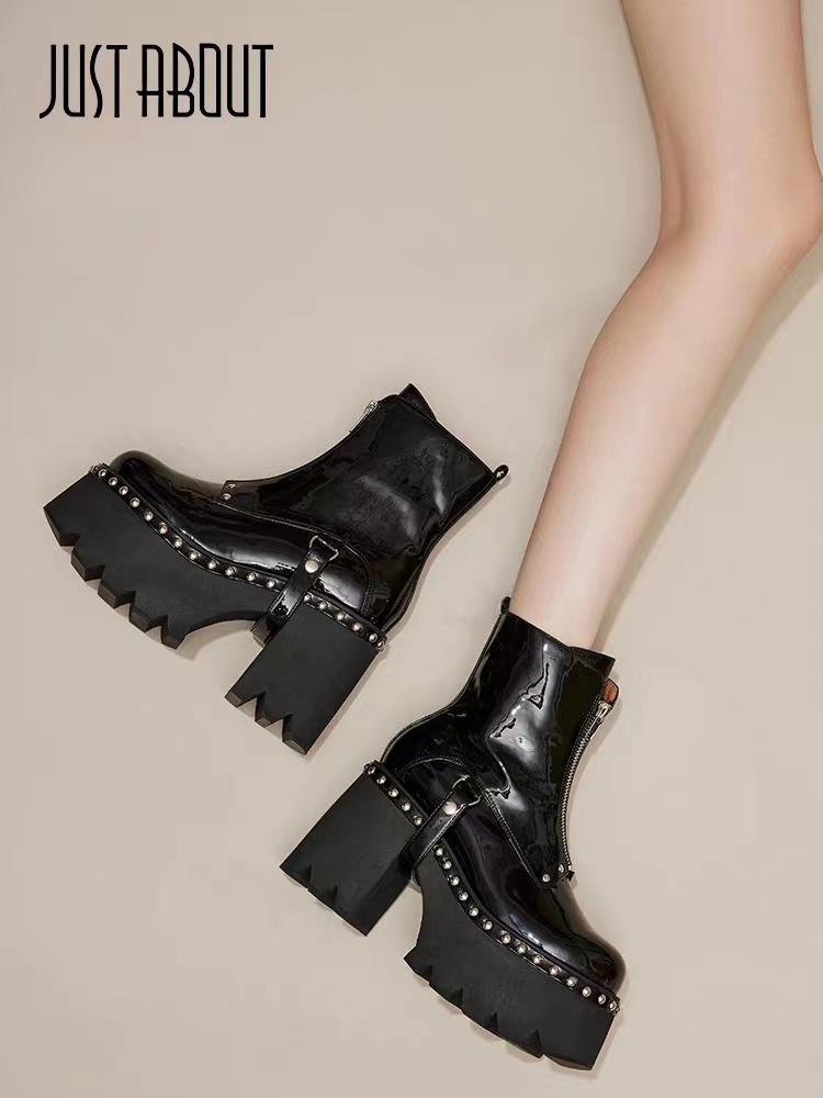 个性钉珠装饰,新潮有型,一字型拉链更显腿长,冬季必不可少的靴子