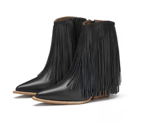 1.复古流苏休闲时尚尖头靴,大胆定义自己的潮流选择