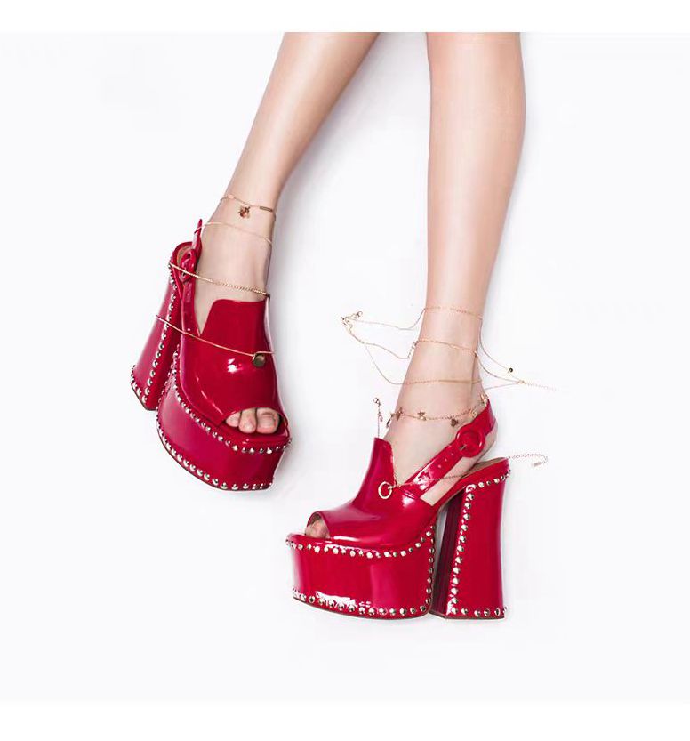 相较于鲜艳的红色镜面高跟鞋,黑色更适合令人喜爱,它简约、大气,更带着几分贵气,永远都不会过时。