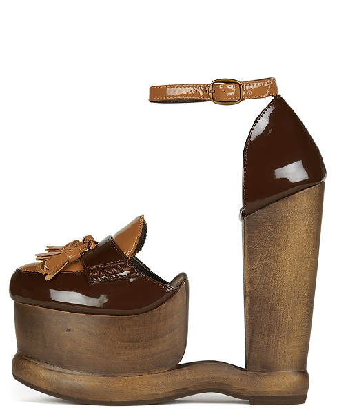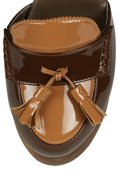 还有这双镂空木履鞋,深棕与浅棕的色彩搭配,加上精致的流苏装饰,复古韵味十足。