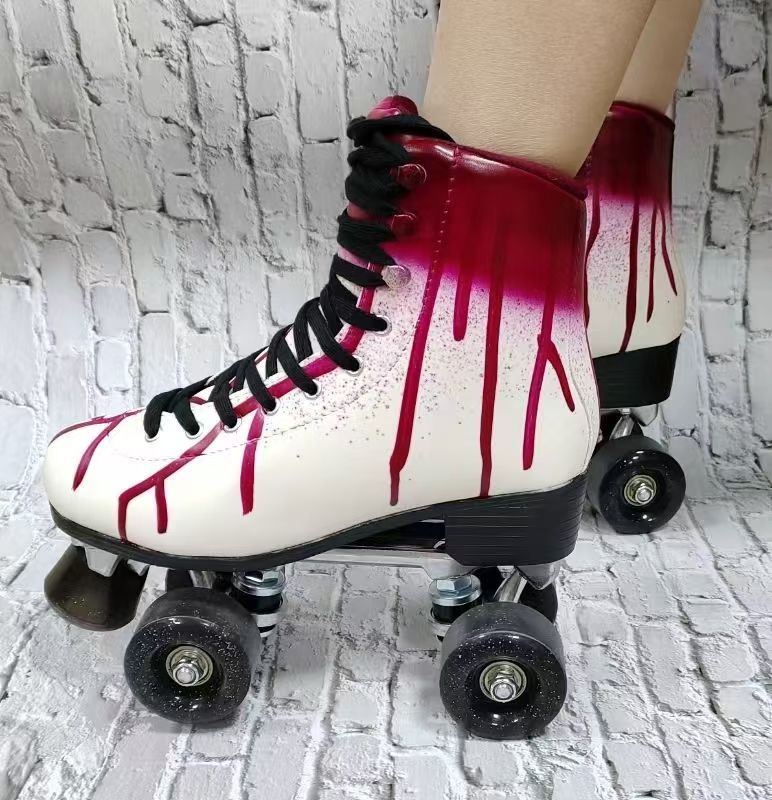 经典的双排轮设计,带着上世纪的自由基因,白色鞋身如同未被污染的初心画布,酒红纹路似血管般肆意蔓延,黑鞋带与黑轮轴,勾勒出利落线条。它静静摆放,却藏着风驰电掣的过往——是少年时代在广场上追逐的自由,是裙摆飘飞时擦过的风,是轮滑场里欢呼声与笑声的载体。