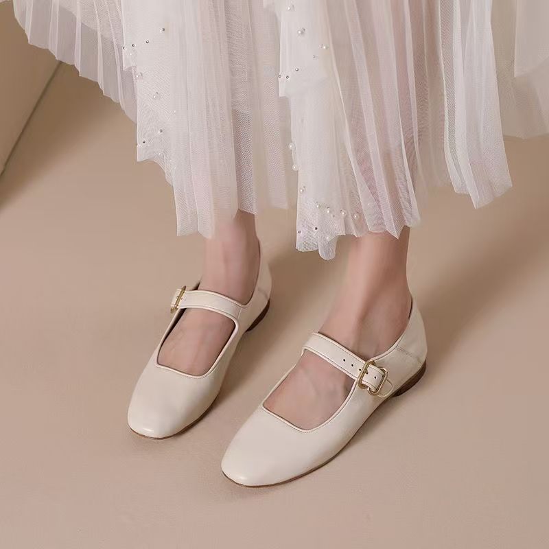 在复古回潮的时尚浪潮中,米白色玛丽珍鞋强势突围。将经典与现代完美融合。